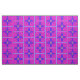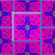 Fabric with Marrakesh Arabesque inspired w/ eggs repeat bright, with ribbon eggs bright art motif elements inspired by the colours and designs of Marrakesh, Morocco, in pink, yellow, bright blue, purple, floral petal medallion, dangling jewels, columns, eggs with a circling ribbon- art by Kristie Hubler.