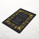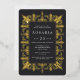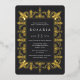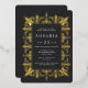 An elegant bridal shower invitation for Moroccan, glam, deco, or Gatsby themed bridal showers featuring an ornate Moroccan style border in gold foil, with classic lettering on a rich charcoal black background.