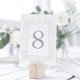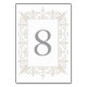 Modern Moroccan inspired table number cards feature a geometric border in pale gray and linen beige, surrounding your table number in medium gray. Design repeats on reverse side. Coordinates with our Marrakesh wedding invitation suite in Linen Greige.