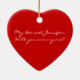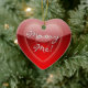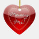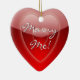 Lovely red heart shaped ornament, with graphics of shinny red on red hearts and text reading Marry Me! On the reverse is solid red and text in white. Personalise by adding your own text, or just change the name. Surprise her this year, with a marriage proposal ornament on your tree.