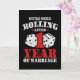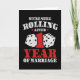 Features 'We're Still Rolling After 1 Years of Marriage' 1st wedding anniversary quote w/ hearts & dice distressed style graphic.