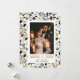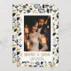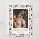 Elegant black and gold newlywed photo Christmas card featuring a black and gold botanical pattern.