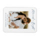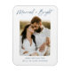 Celebrate your first Christmas as a married couple with our Married and Bright holiday photo magnet! The magnet features "Married & Bright" in a navy hand-lettered modern script. Your wedding photo is displayed with a white rough edge border. Personalise the magnet by adding a custom greeting with your names shown below.
