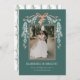 Celebrate your first holiday season as newlyweds with this charming “Married and Bright” photo card! Your favourite wedding photo takes centre stage, beautifully framed by hand-painted watercolor details—pine boughs, holly, golden bells, and a festive bow—for a look that’s both romantic and seasonal.