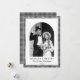 Elegant Married and Bright Arch Wedding Photo Holiday Card. Celebrate your first holiday season as newlyweds with this elegant arch photo card. The front features a modern “Married and Bright” typography, complete with your family name in a hand-lettered script and year. On front framed in a chic black and white plaid pattern. The back a greeting text template showcases on a coordinating black and white plaid pattern for a timeless, festive touch. A perfect way to share your joy and newlywed holiday cheer with loved ones.