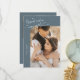 Married and Grateful Wedding Photo Slate Blue Thank You Card