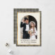 Married and Merry Arch Photo Black Gold Plaid Holiday Card