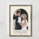 Married and Merry Arch Photo Black Gold Plaid Holiday Card