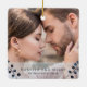 This beautiful newlywed "married and merry" holiday photo ornament features the new wedding couples name in simple typography, and modern blue overlay and watercolor winter berries.