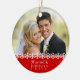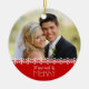 This trendy yet elegant Christmas ornament makes a great keepsake for a newly wed couple. It features the words "Married and Merry" on a solid colour background and a border or small snowflakes. The names and the year can be added on the back side. Add a picture of the happy couple and make it a great holiday gift!