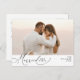 Married and Merry. Celebrate the first Christmas, as the new Mr. and Mrs. , with this romantic married couple photo postcard. It is fully customisable and personalised with your own greeting messages. Please add your return address for easy mailing. It is simple, easy, yet modern minimalist and festive. This is the perfect postcard for sending your holiday wishes, with hearts brimming with love and gratitude, to extend your warmest wishes for a truly enchanting Christmas and a prosperous New Year to all the cherished souls in your lives, your dear friends and beloved family.
