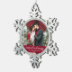 Married and Merry Elegant Calligraphy Script Wedding Photo Burgundy Snowflake Pewter Christmas Ornament