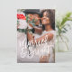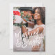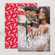 This design features a full bleed photo with a modern brushed font reading "Married & Bright", perfect for couples celebrating their first christmas as newlyweds! The back design features a bright red berry background with holiday branches. Background colour can be changed by clicking on the customise button.