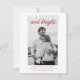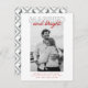 Christmas card for the newlywed couple in a red and gray typography "Married and bright" design. Customized with your photo, greeting and names. The backside of this photo Christmas card is coordinating gray Christmas snowflake and reindeer plaid design.