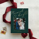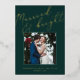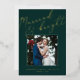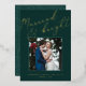 Elegant holiday photo cards for newlyweds feature a favourite square wedding photo on a rich forest green background, with "married & bright" in luxe gold foil calligraphy script. Personalise with your names or custom greeting beneath. Perfect for sharing a wedding photo for your first married Christmas.
