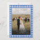 Elegant Rustic Blue Gingham Crest Monogram 2 Photo "Married & Bright" Card.