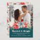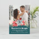 From the Farmhouse Poinsettia Christmas & Holiday Collection: Rustic Farmhouse Poinsettia Married & Bright Newlyweds Photo Holiday Christmas Card, with Beautiful Bouncy Calligraphy Script Font "Have Yourself A Merry Little Christmas" Holiday Greeting, and Personalized Family Name. Easily Add your family or New Baby photograph and text to this gorgeous Christmas Card Template. In 4 different colorway options, this option features a simple Dark Teal Green background color, and pretty watercolor poinsettia and greenery background on farmhouse white ship-lap wood! A classic and rustic combination that will wow all your family and friends who receive their card this year!