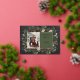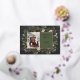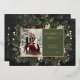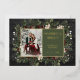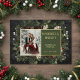 Introducing our enchanting winter wedding foil photo announcement card, where timeless elegance meets the beauty of the season. The rich pine charcoal black background, artfully distressed with soft white accents, sets a captivating tone for your special day. In the dark sage green text area, your wedding details will shine, surrounded by a delicate cream frame that adds a touch of refinement. Embrace the spirit of winter with a breathtaking frame of lush greenery, featuring holly adorned with rich red berries, mistletoe with its delicate white berries, and the timeless allure of green pine. This winter wonderland-inspired design captures the essence of the season and invites your guests to celebrate your love in a setting that exudes natural grace and festive charm. Created by Simply Farmhouse Press.