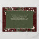 Introducing our enchanting winter wedding foil announcement card, where timeless elegance meets the beauty of the season. The rich burgundy background, artfully distressed with soft white accents, sets a captivating tone for your special day. In the dark sage green text area, your wedding details will shine, surrounded by a delicate cream frame that adds a touch of refinement. Embrace the spirit of winter with a breathtaking frame of lush greenery, featuring holly adorned with rich red berries, mistletoe with its delicate white berries, and the timeless allure of green pine. This winter wonderland-inspired design captures the essence of the season and invites your guests to celebrate your love in a setting that exudes natural grace and festive charm. Created by Simply Farmhouse Press.