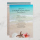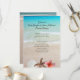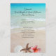 A keepsake beach wedding program for a casual and short ceremony by the sea.  Flat 5x7 inch cards contain a beach scene, sand dollar, starfish and pink plumeria flower.  Black text is easy to customise with names of the bride and groom at the top, date and location of the ceremony and a paragraph for ceremony information.  Also include a message to guests if you wish.  Notched corners are optional, with paper upgrades available.