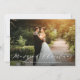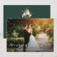 card design with a photo of the bride and groom and elegant typography. The text and colours can be personalised.