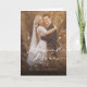 The card inside has a full bleed photo on one side, an editable sample holiday message, and the couple's name and wedding date on the other.