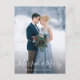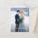 modern wedding announcement holiday card with white script, image and a thank you message to your guests. The couples image can be personalised.