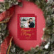 Married and Merry Our First Christmas 2-photo foil greeting card in Christmas red is the perfect way to celebrate a newlywed couple's first Christmas, with its clean and modern font with hearts and classic holiday colours, as well as a personalised message on the back. The playful "Married and Merry" message is a thoughtful and sentimental way to celebrate their first holiday season together. This card is part of the Married and Merry collection, which includes pillows, ornaments, and more!