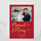 Married Merry Newlywed 1st Christmas Photo Red Foil Holiday Card