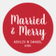 Married & Merry Newlywed Holiday Red Round Large Classic Round Sticker