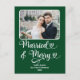 Married Merry Newlyweds 1st Christmas Green Photo Holiday Postcard