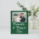 This Married and Merry Our First Christmas custom photo greeting post card in forest green with hearts is the perfect way to celebrate a newlywed couple's first Christmas, with its clean and modern font and classic holiday colours, couple's photo, as well as a personalised message on the back. The playful "Married and Merry" message on this postcard is a thoughtful and sentimental way to celebrate their first holiday season together.