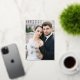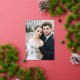 This Married and Merry Our First Christmas custom 2-photo gold foil greeting card with hearts is the perfect way to celebrate a newlywed couple's first Christmas, with its clean and modern font and classic holiday colours, room for two photos, as well as a personalised message on a red background on the back. The playful "Married and Merry" message is a thoughtful and sentimental way to celebrate their first holiday season together. This card is part of the Married and Merry collection, which includes pillows, ornaments, and more!