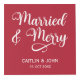 Commemorate the newlyweds' first Christmas as a married couple with this Married and Merry Newlyweds First Christmas Photo Cube. This photo cube features 4 wedding photos with the couple's names and wedding date in white on a red background and the words "Married & Merry" in a beautiful script font.