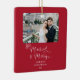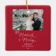 Married Merry Newlyweds First Christmas Red Photo Ceramic Ornament