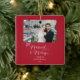 Our First Christmas Married and Merry personalised photo ornament in Christmas red is the perfect way to celebrate the newlyweds' first Christmas, with its clean and modern font and classic holiday colours, and room for two photos. The playful "Married and Merry" message is a thoughtful and sentimental way to celebrate their first holiday season together. This custom ornament is part of the Married and Merry collection, which includes Christmas cards, pillows, ornaments, and more!