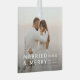 Remember your big day with the commemorate your marriage this year with this simple keepsake photo glass ornament. This ornament features your favourite newlywed photo, the 'MARRIED & MERRY' design, and custom names and wedding date. A heartfelt keepsake for couples, ideal for marking your first year as newlyweds. Personalise yours and enjoy displaying it year after year. Make your tree extra meaningful this season.