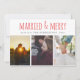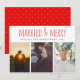 Married & Merry Red Script Three Photo Holiday Card