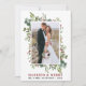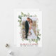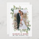 Elegant Watercolor Winter Greenery Married & Merry Wedding Photo Newlywed Holiday Card includes eucalyptus leaves and red holly berries.
