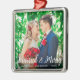 Married & Merry Wedding Photo Christmas Ornament Square - White Script