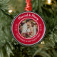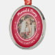 This personalised Christmas ornament features a modern design with script font and hearts. Personalise the name, year and wedding photo. This template works best with a landscape format photo with the couple in the centre.