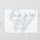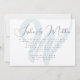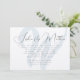 Unique and modern wedding ceremony invitation template with big initial background. A simple design with large, handwritten script for first names at the top of horizontal flat cards. The full names of the couple can be included in the printed text if desired. There are enough lines to include a reception venue address as well. Neutral design theme with black text on white paper - shown on a textured paper upgrade. The initial and reverse side are light, grey-blue colour.