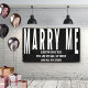 Proposal Banner lettered with "marry me?" and your personalised text such as "[name] you are my sun, my moon and all my stars". This bold design has trendy oversized typography set around your custom wording. This banner has a colour palette of black and white, which you are welcome to change (click "customise further") or message me for assistance.