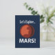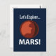 Mars Let's Explore Mars Postcard original design by Nisha Prabhu. Set your imagination ablaze and send a message from the Red Planet with our Mars: Let's Explore Mars postcard! Featuring stunning visuals of Mars' captivating landscapes and vibrant colours, this postcard invites exploration and adventure in the cosmos. Perfect for space enthusiasts, aspiring astronauts, or anyone with a love for the great beyond, this postcard is a delightful way to share your passion for the universe. Whether it’s a personal note or a gift to inspire others, let your words soar as high as the Martian skies. Grab yours today and make your message out of this world!