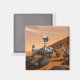 Artist concept of Mars Science Laboratory Curiosity rover, a mobile robot for investigating Mars' past or present ability to sustain microbial life. In this picture, the rover examines a rock on Mars with a set of tools at the end of the rover's arm, which extends about 7 feet. Two instruments on the arm can study rocks up close. Also, a drill can collect sample material from inside of rocks and a scoop can pick up samples of soil. The arm can sieve the samples and deliver fine powder to instruments inside the rover for thorough analysis.