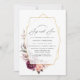 Boho burgundy red and blush pink floral sip and see party invitation featuring peonies and roses with gold geometric frame customisable to your event specifics.