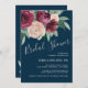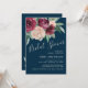 This luscious feminine watercolor floral bridal shower invitation features a vibrant colour combination of marsala deep red and pale blush pink roses in a generous cascade over a trendy navy blue background. The look is modern and stylish. Personalise the sample text in the easy-to-use text template. You can add or remove lines of text as needed to convey your bridal shower details.