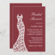 A delicate lacy wedding dress accents this bridal shower invitation, on a trendy marsala background. It is shown on the basic paper; however, I recommend the weight and texture of the linen paper.