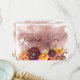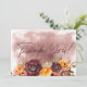 This design features a large corner bouquet of marsala, yellow gold, clay and white flowers on a marsala wine watercolor splash background. This design is part of the Marsala Clay & Yellow Bouquet Wedding Suite Collection.