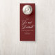 An elegant wedding "do not disturb" sign featuring a burgundy/marsala solid background with a white mix of script and modern sans serif font. Personalise for your wedding.